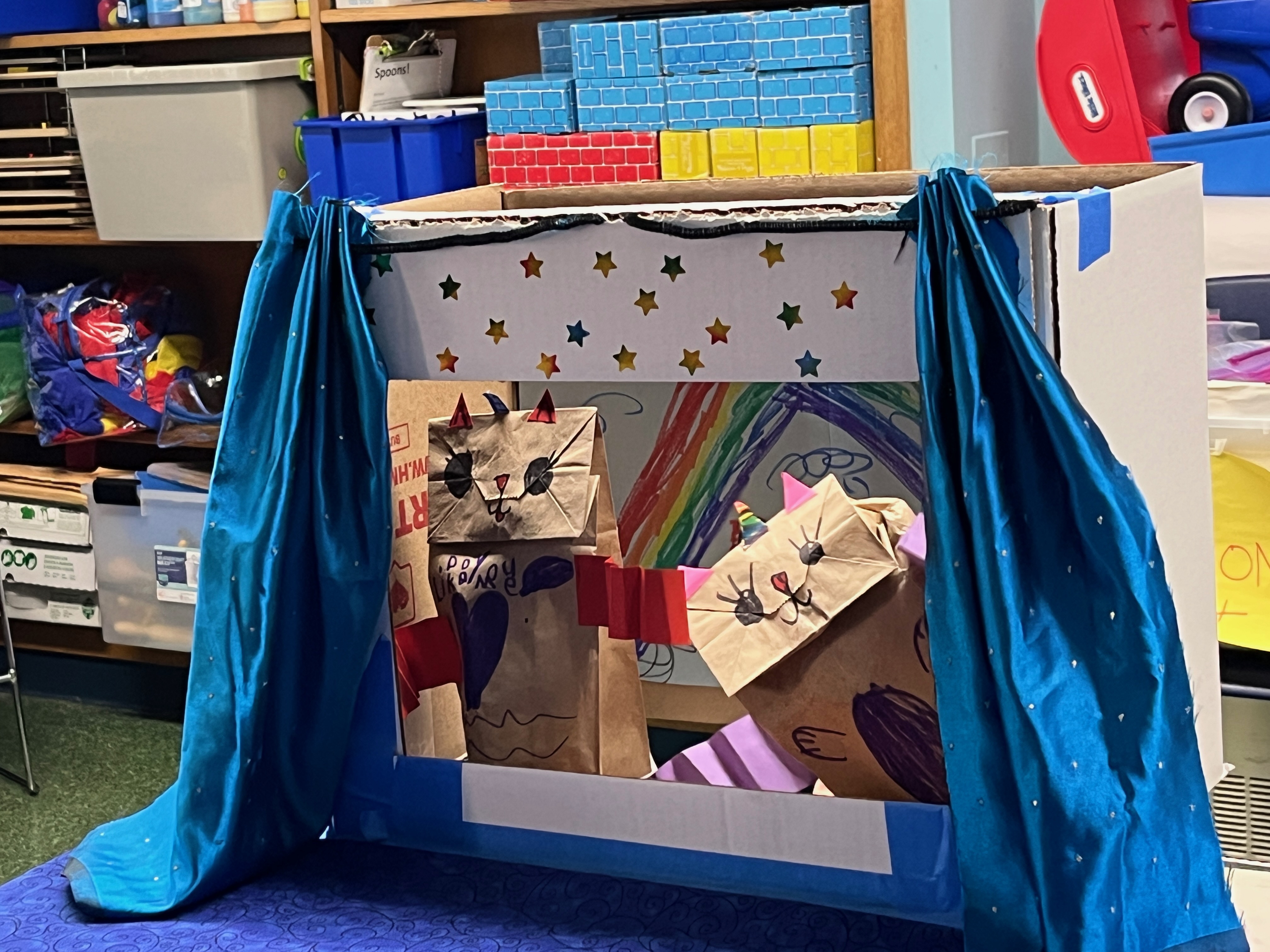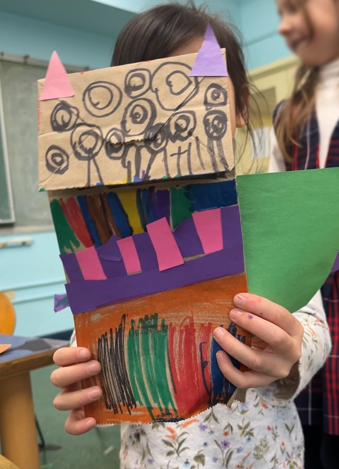 With younger students I explore a variety of mediums. We do watercolor experiments, where students explore color mixing and create textures using salt, or toothbrushes, straws, crayons. They use resulting swatches to make collages or dioramas. Puppets are the most popular project. Clay and painting are not far behind. Not to mention printmaking. I often introduce concepts—themes or techniques—with picture books. Art is both expression and play. It is meant to be fun. Pleasure keeps us open to new ideas and new ideas keep us growing.