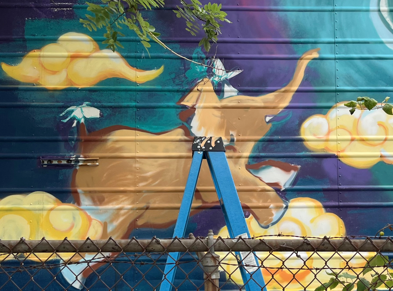 Through nonprofits like Thrive Collective, Groundswell, and Creative Art Works, I make murals with teens and young adults. A few are comfortable drawing, most are not. Collaboration and connection are the most important components in group projects. In the concept phase, we get to know each other. We warm up with silly drawing games, allow our neighbors to add to our sketches. We practice letting go.