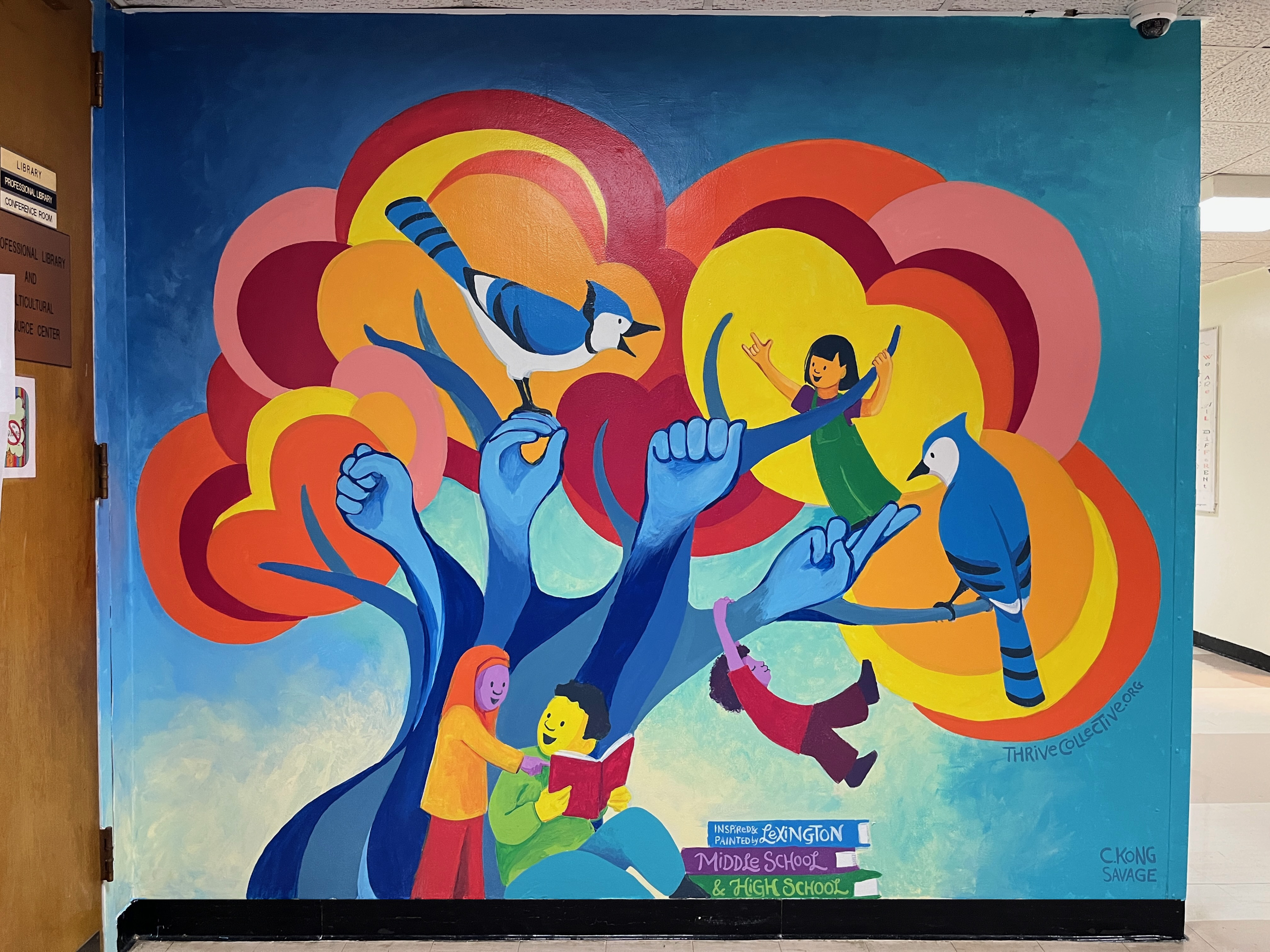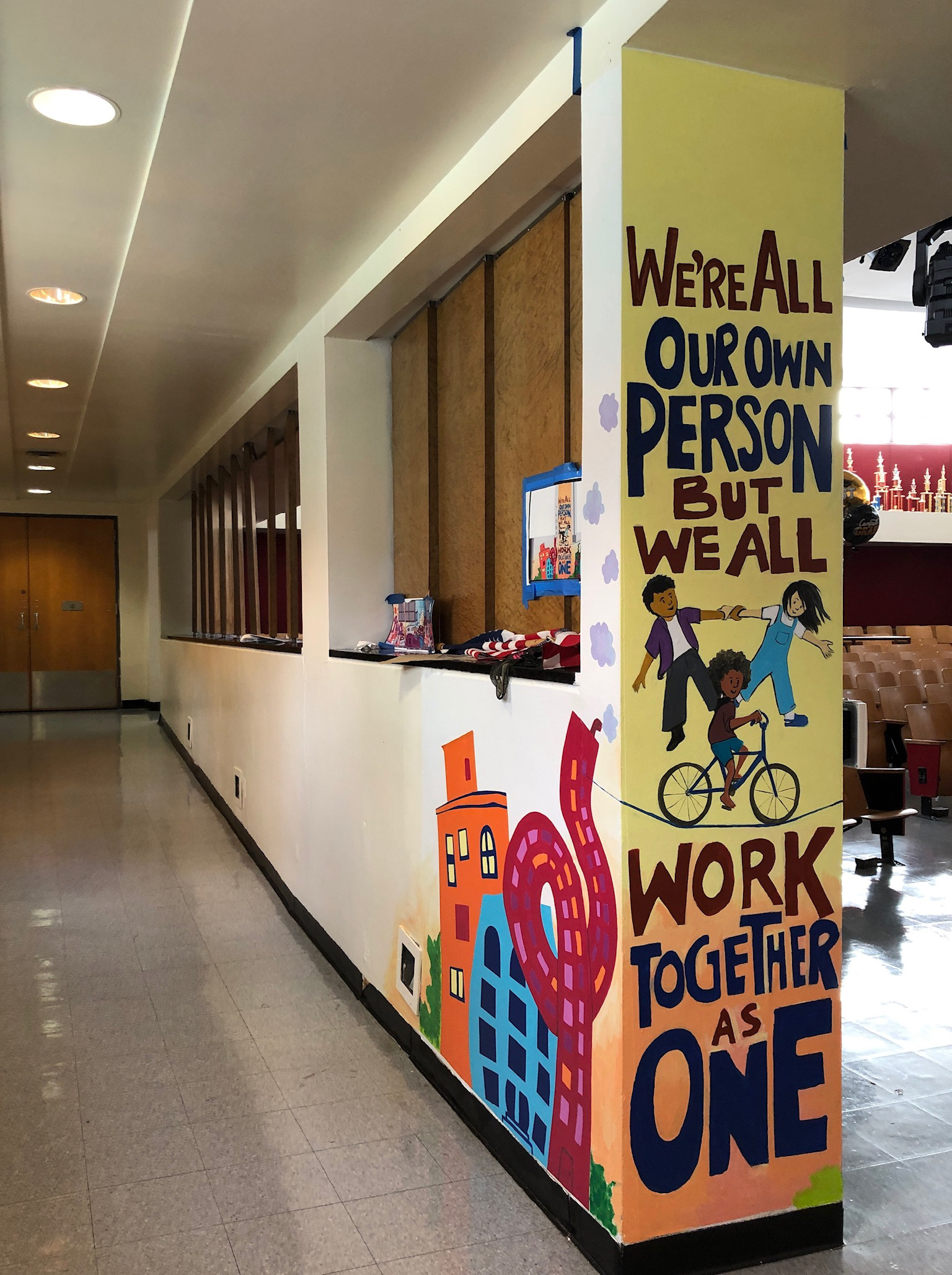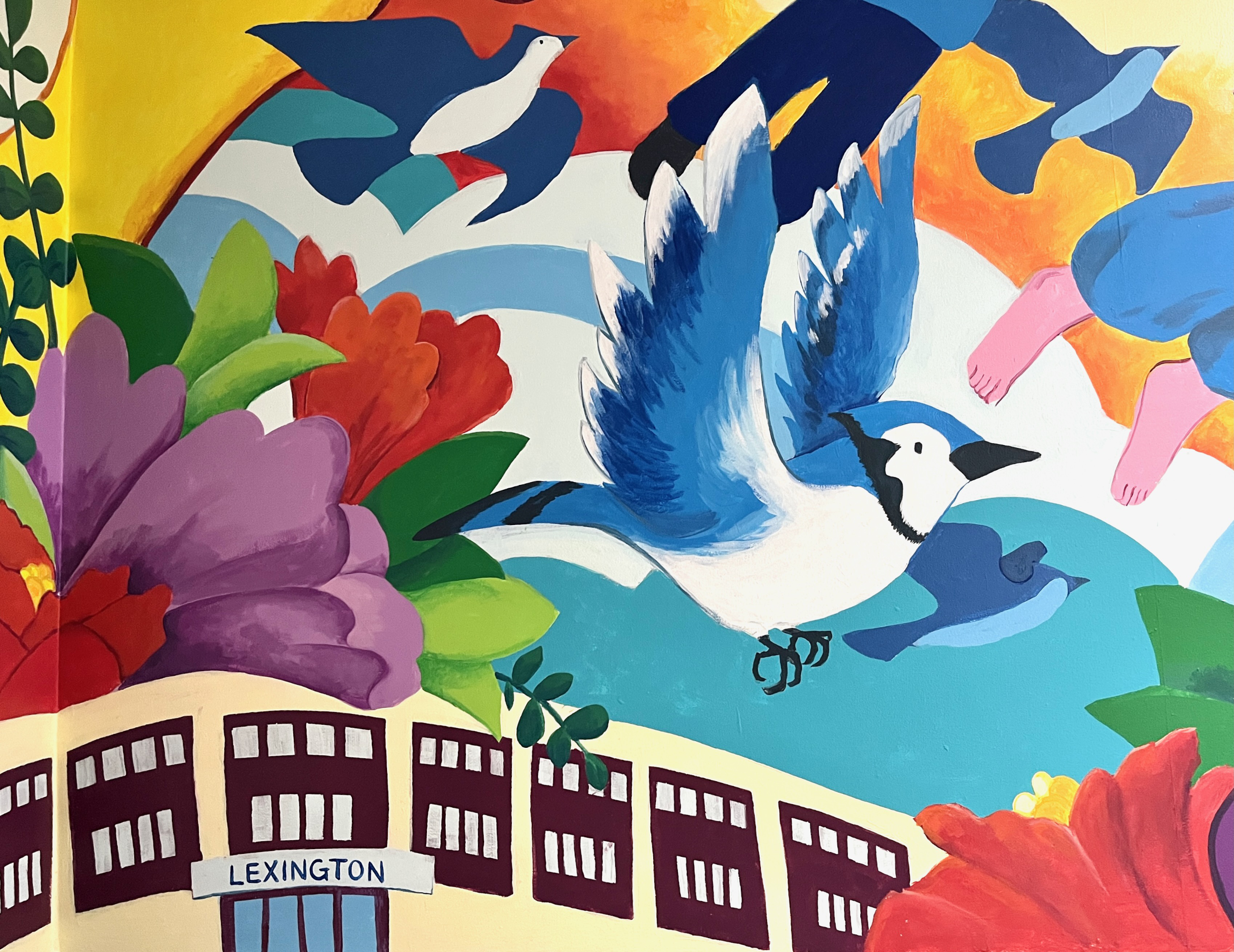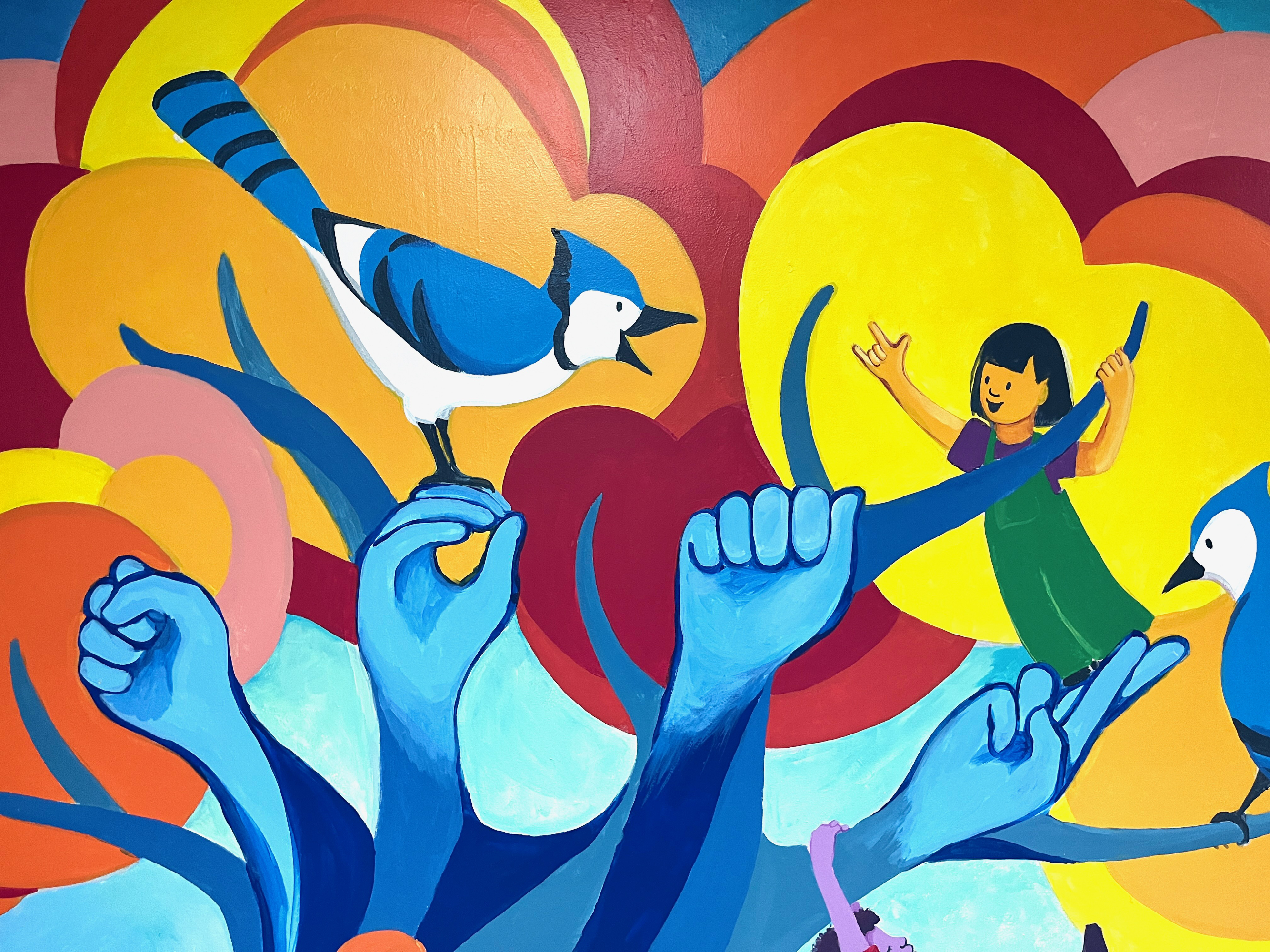 The hands on the tree spell SOAR, an acronym for Safe, Open-minded, Accountable, Respectful—values promoted in Lexington’s curriculum. Murals were painted by 20 students in three classes. “What is important to you?” I asked an art class of eight high schoolers. “Friends,” was the first response. The school is a major hub in the Deaf community, but class sizes are small, which fosters strong camaraderie. The students love their school, represented by blue jays. “Communication,” is also very important—sign language, body language, facial expression.